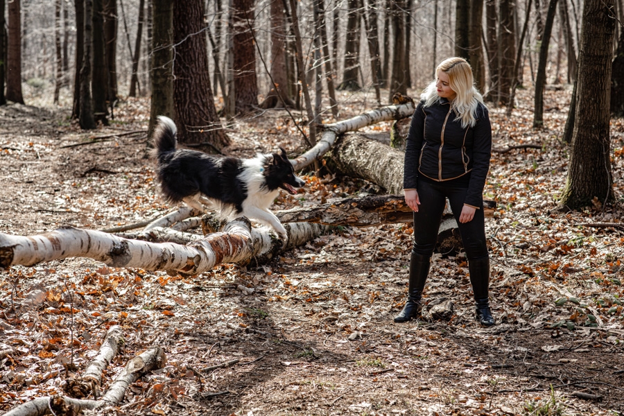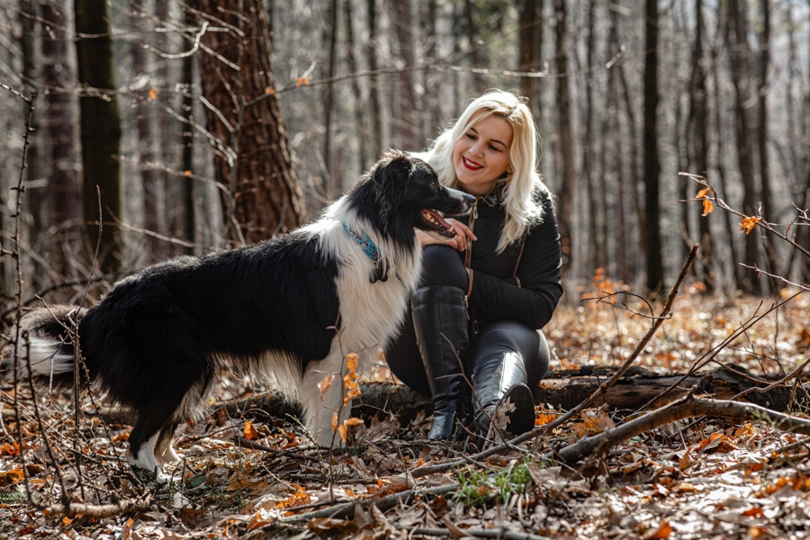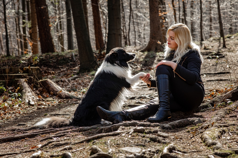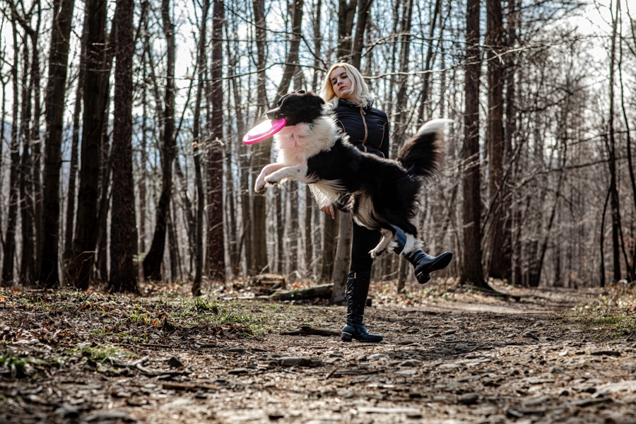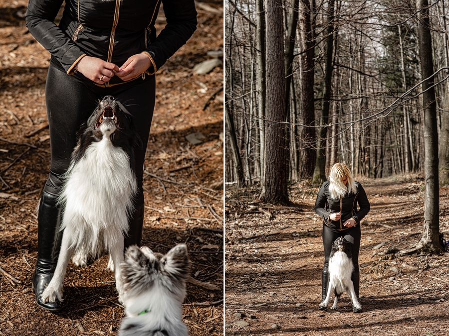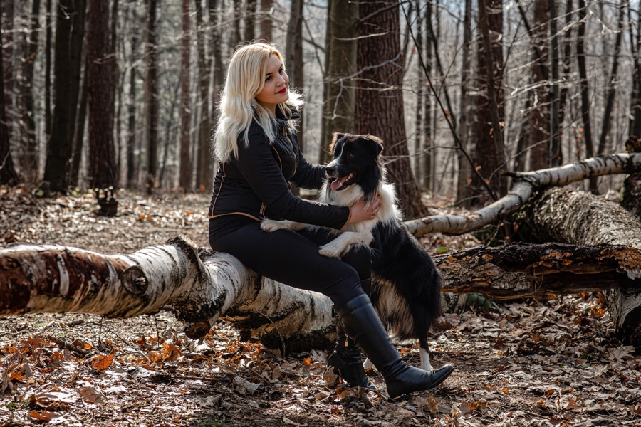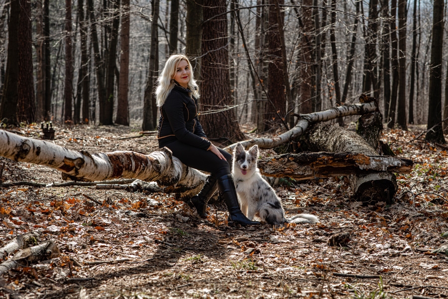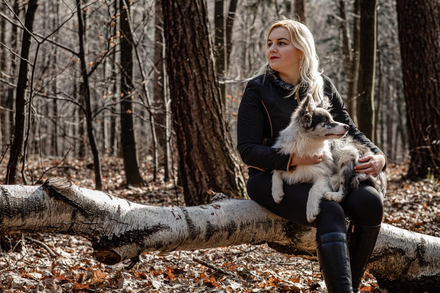 No i w końcu się udało, po długich próbach zgrania wolnego czasu z dostępnością idealnych modeli mamy sukces. W ogromnym zamieszaniu związanym z fotografią ślubną nadszedł czas na chwilę wyluzowania i realizacji czegoś odmiennego. Kocham zwierzęta i zdjęcia właściciela z czworonogiem wcześniej czy później musiały się tu znaleźć. Co mogę powiedzieć o przebiegu sesji? Na pewno podejście jest inne niż przy pracy tylko z ludźmi. Na nic nie przyda się cały bagażnik lamp, wyzwalaczy czy akcesoria do modelowania światła. Wystarczy szybki aparat i długi obiektyw. Ujęcia że tak powiem z gleby, czyli garnitur i krawat też odpada, bo tarzanie po ziemi to normalność.
