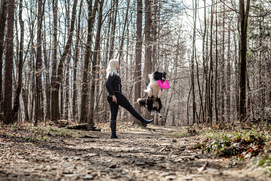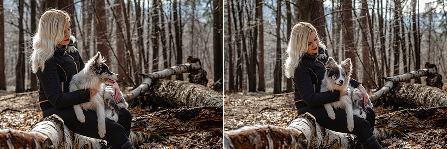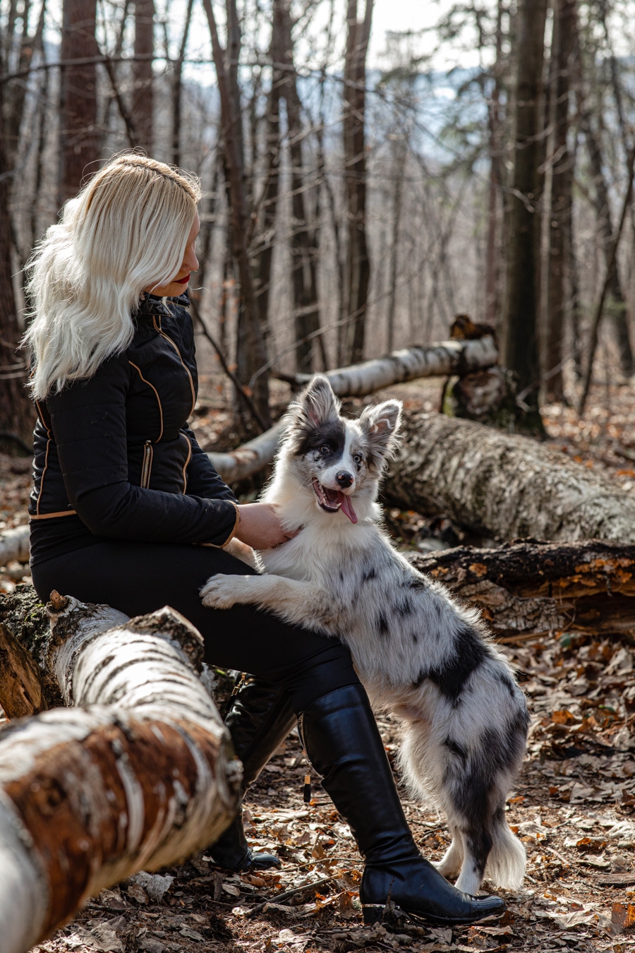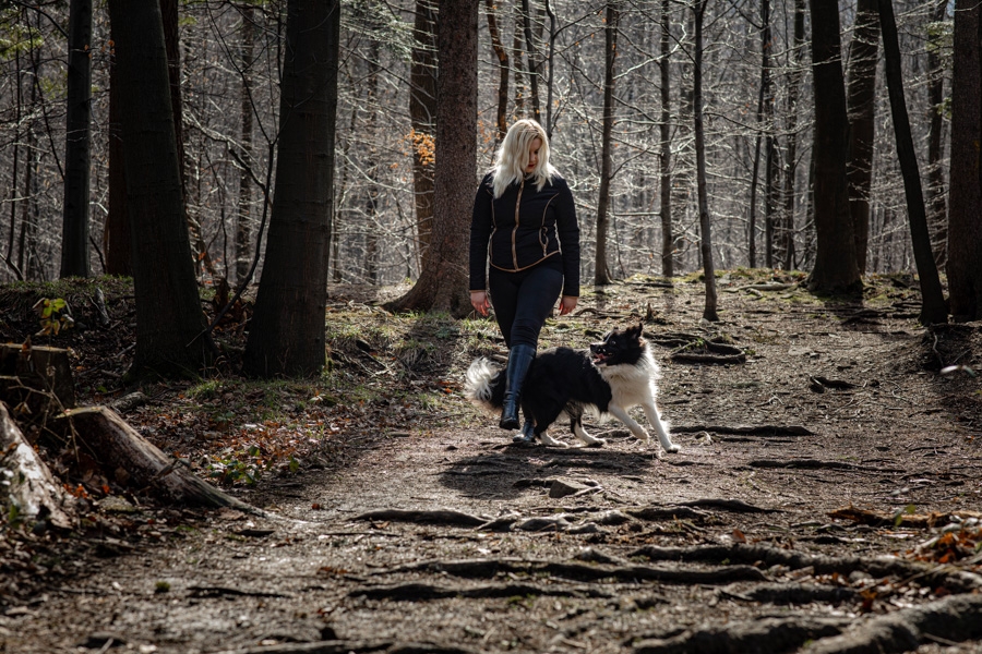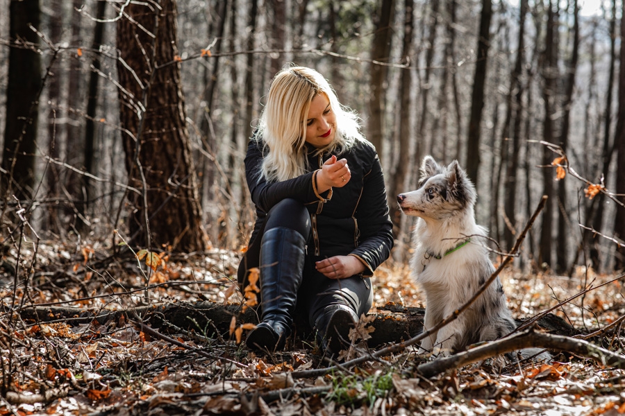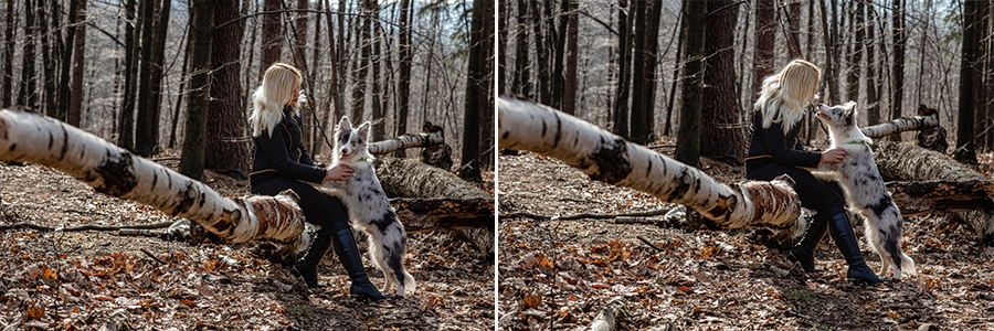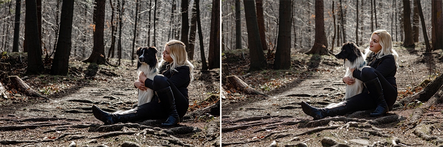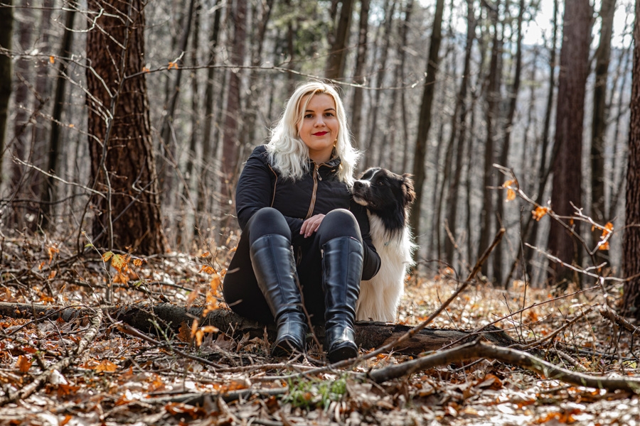 No i w końcu się udało, po długich próbach zgrania wolnego czasu z dostępnością idealnych modeli mamy sukces. W ogromnym zamieszaniu związanym z fotografią ślubną nadszedł czas na chwilę wyluzowania i realizacji czegoś odmiennego. Kocham zwierzęta i zdjęcia właściciela z czworonogiem wcześniej czy później musiały się tu znaleźć. Co mogę powiedzieć o przebiegu sesji? Na pewno podejście jest inne niż przy pracy tylko z ludźmi. Na nic nie przyda się cały bagażnik lamp, wyzwalaczy czy akcesoria do modelowania światła. Wystarczy szybki aparat i długi obiektyw. Ujęcia że tak powiem z gleby, czyli garnitur i krawat też odpada, bo tarzanie po ziemi to normalność.